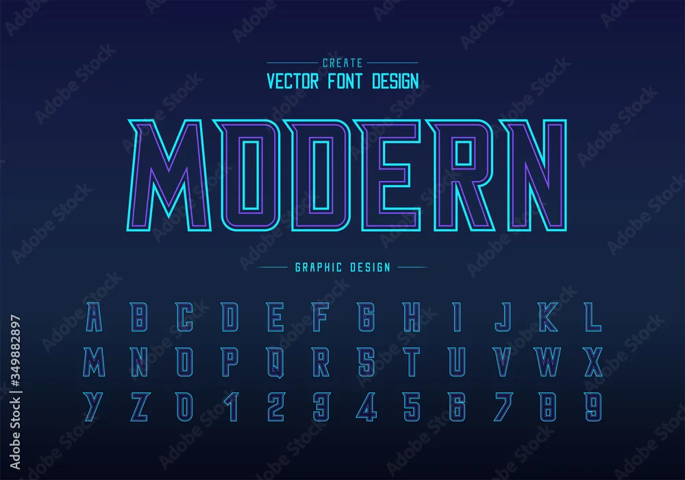 Double line font and alphabet vector, Modern Typeface and letter number design, Graphic text on background