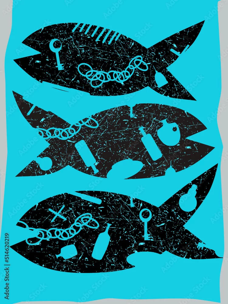 eco poster with a fish in a background, connected with pollution of enviroment