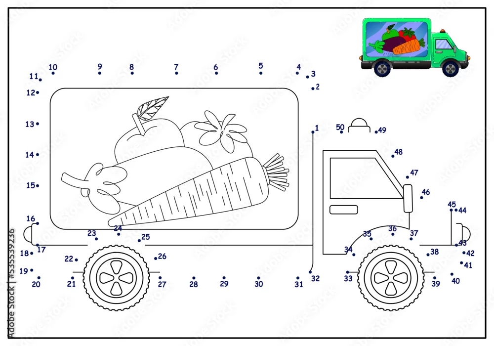 Educational puzzle game for kids: number game. Automobile. Page coloring. Outline of a cartoon car. Coloring book for children. cars.