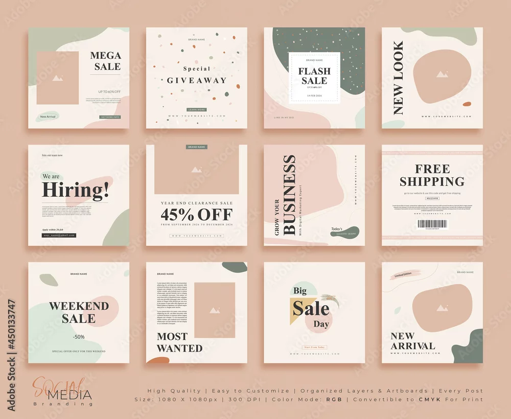 Elegant social media post layout, trendy social media post set, eye catchy bold text social media post design