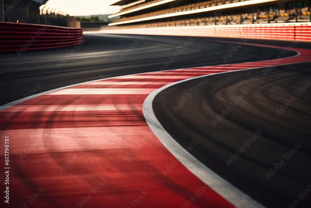 Empty motor sport asphalt race track, clear and awaiting action, with no cars in sight