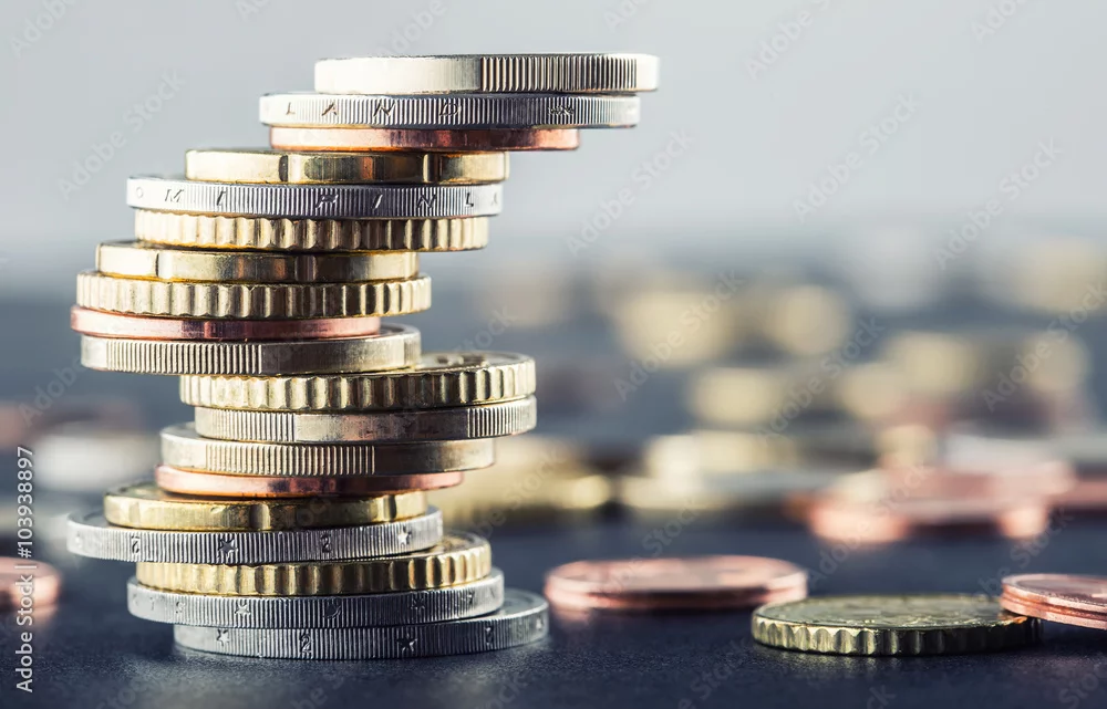 Euro coins. Euro money. Euro currency.Coins stacked on each other in different positions. Money concept.
