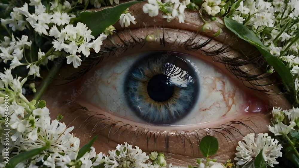 Eyes in Nature Large, realistic human eyes embedded within flowers, trees, or clouds, creating an uncanny blend of the organic and the sentient