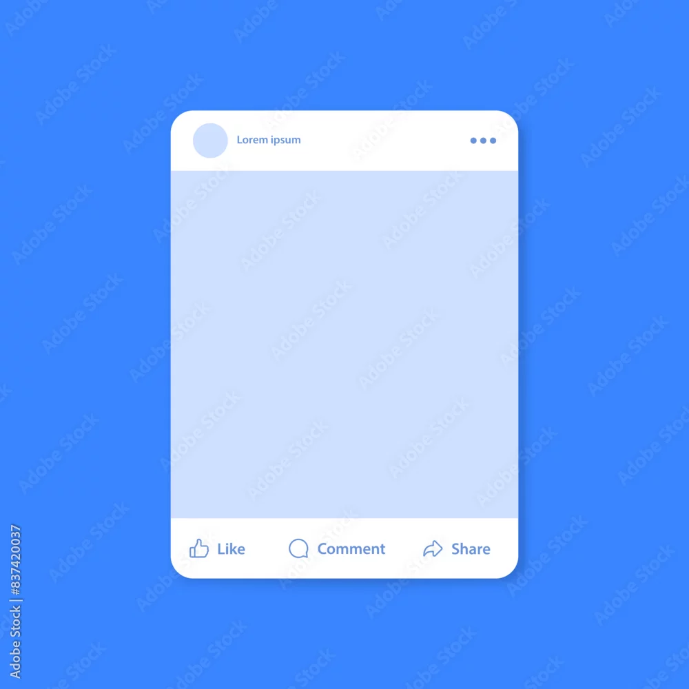 facebook post frame mockup template. social media and social network, facebook feed web post mock up. vector mobile app interface template . facebook notification icons, like, comment, share, icon