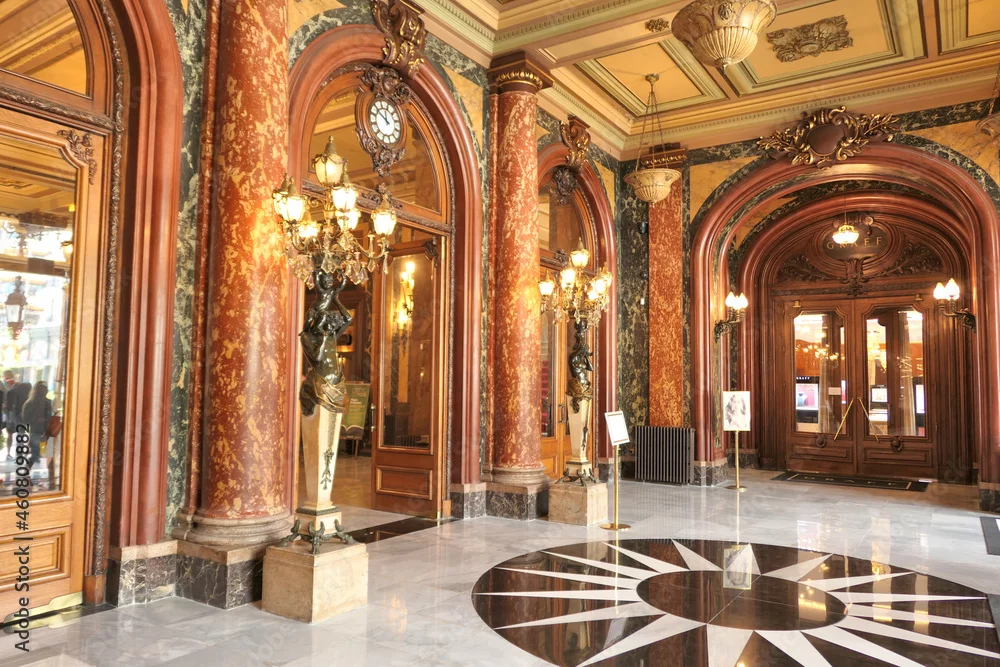 Famous Monte Carlo Casino entrance hall interior in Monaco