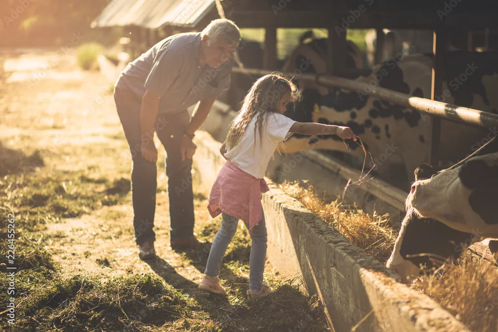 Feeding animals on the farm.