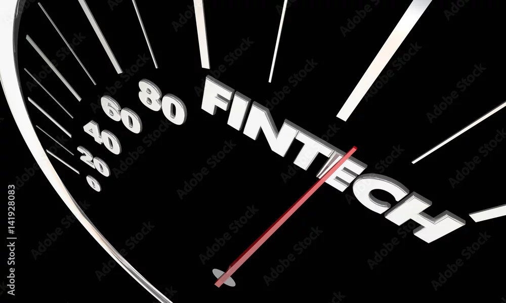 Fintech Finance Software Tools Apps Speedometer Word 3d Illustration