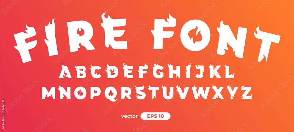 Fire alphabet. Burning letters. Flat style vector illustration. Font set isolated on a white background. Cartoon simple modern design.