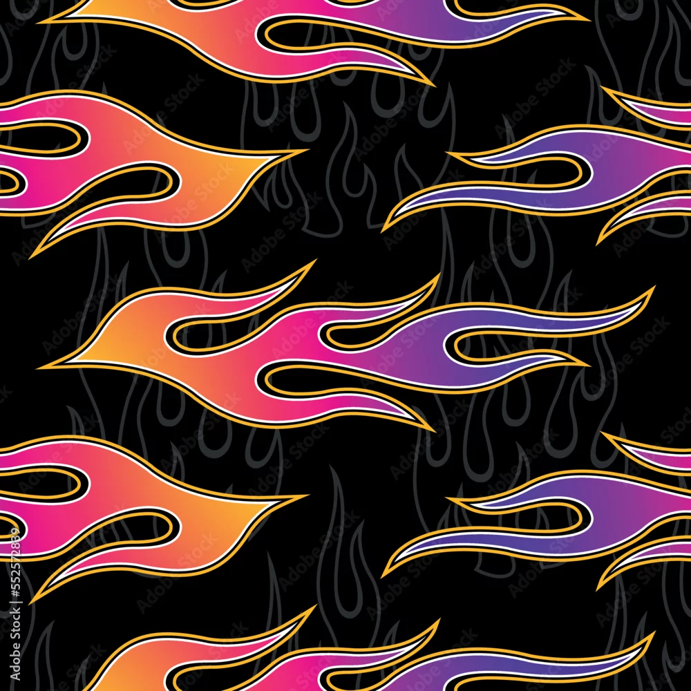 Fire flames seamless pattern vector illustration. Vector fire seamless background for wallpaper, wrapping, packaging, fabric and textile design.