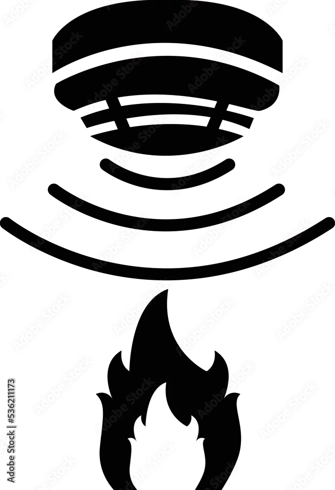 Fire flames sensor icon on white background. Smoke alarm system sign. Flame detector symbol. flat style.