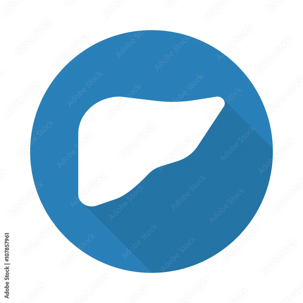 Flat white Liver web icon with long drop shadow on blue circle
