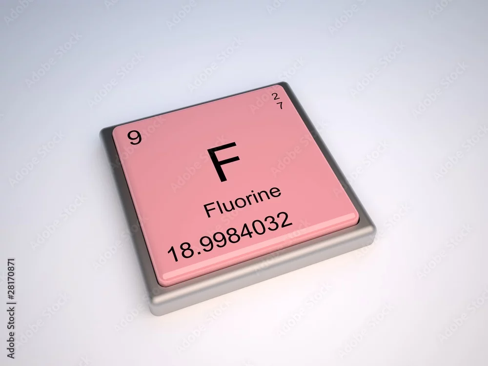 Fluorine chemical element of periodic table with symbol F