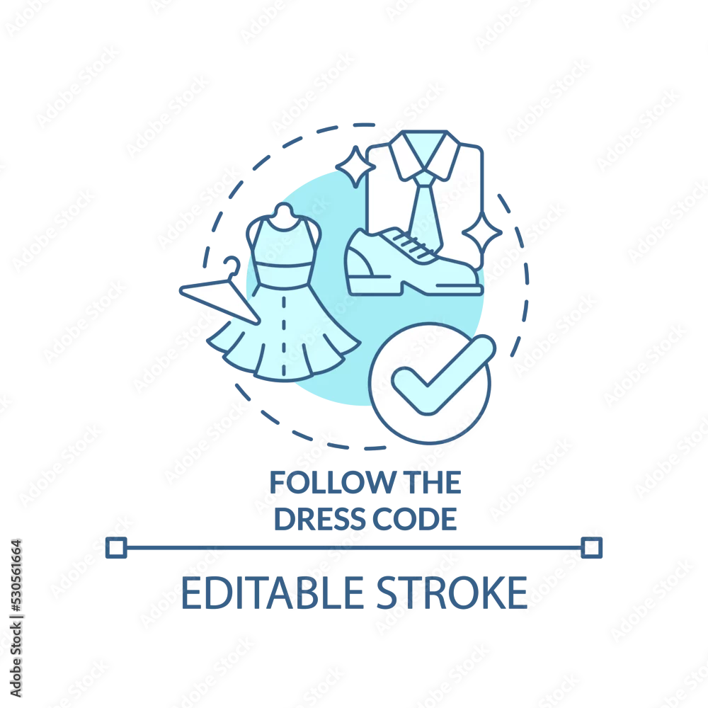 Follow dress code turquoise concept icon. Common business event etiquette rule abstract idea thin line illustration. Isolated outline drawing. Editable stroke. Arial, Myriad Pro-Bold fonts used