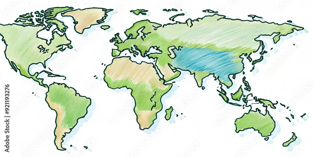Freehand doodle drawing of Asia countries map , Asia, countries, map, sketch, outline, hand drawn, doodle, art