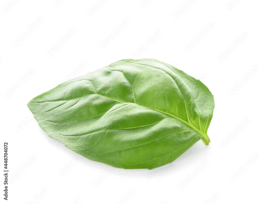 Fresh basil leaf on white background