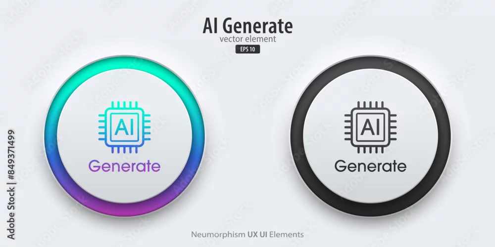 Generate AI icon buttons. A set of active and inactive buttons with Generate AI symbols. Artificial intelligence learning technology concept. Neumorphism ...