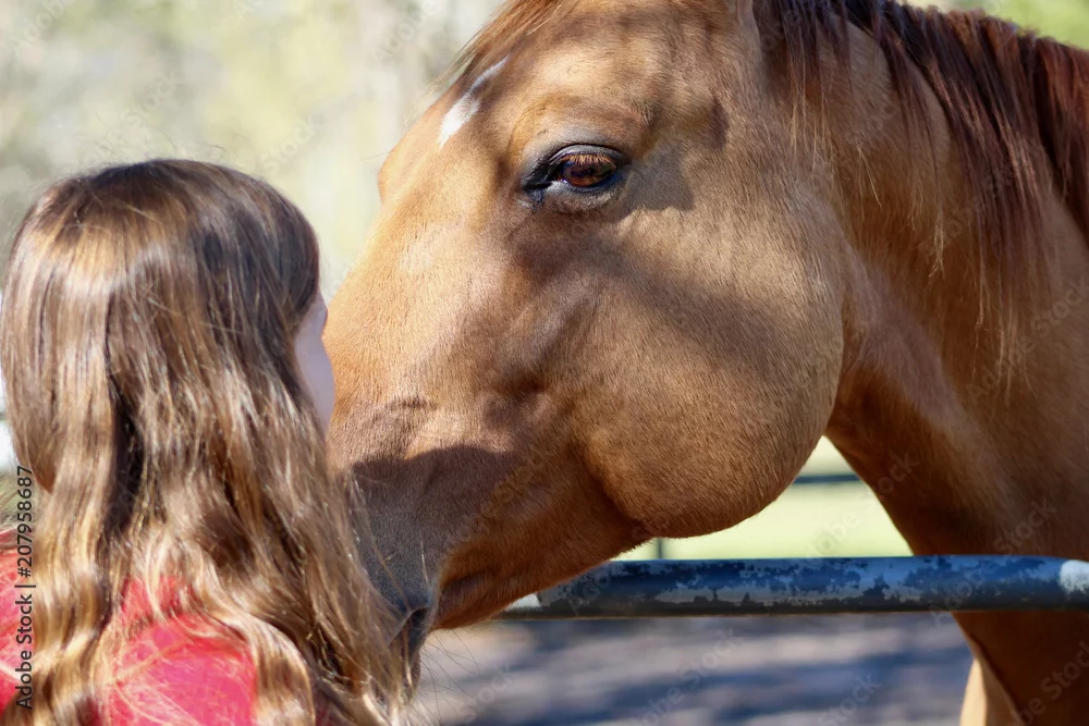 Girl and Horse Meeting over Gate