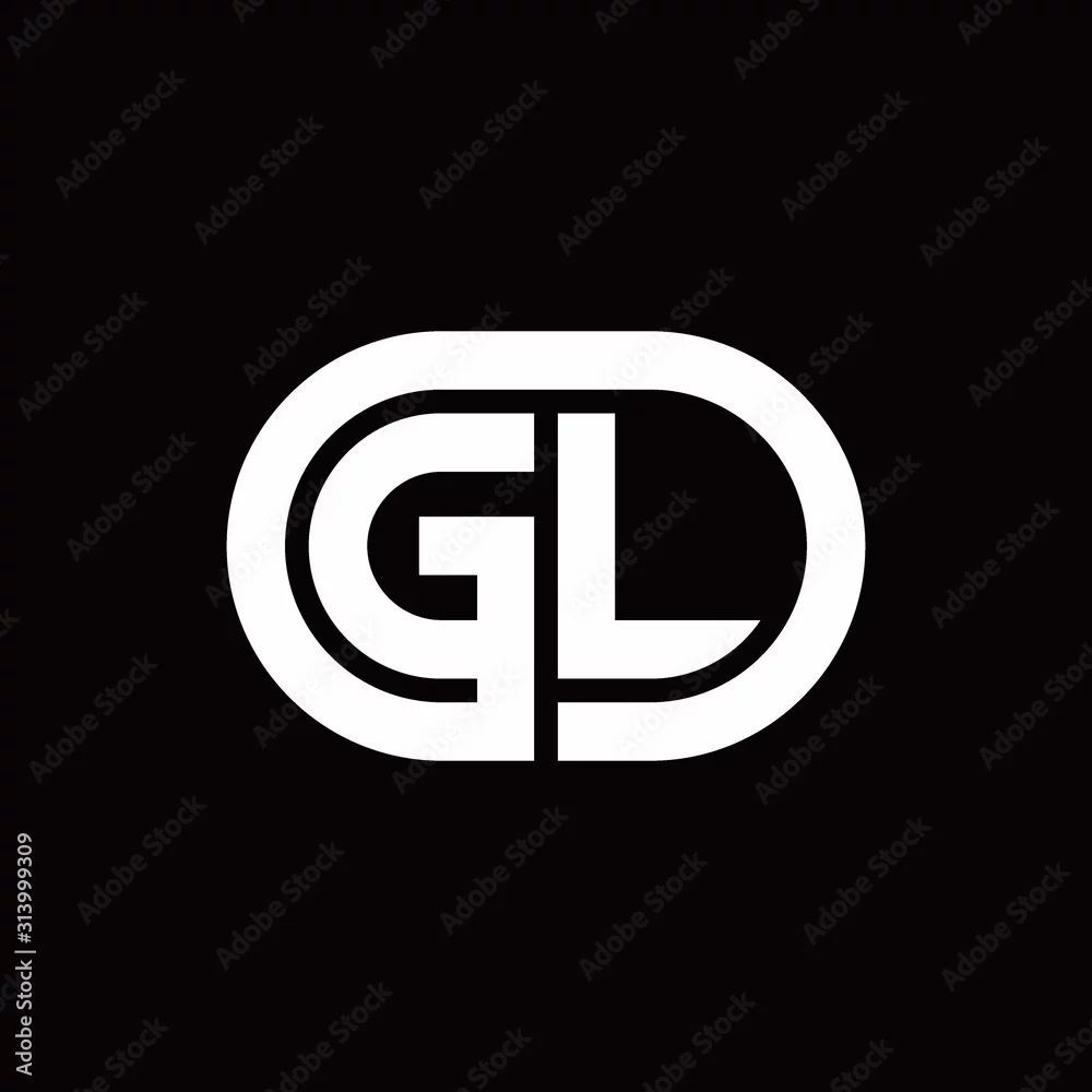 GL monogram logo with an oval style on a black background