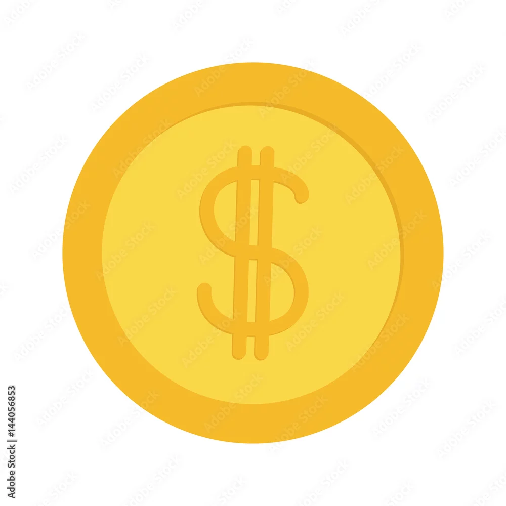Gold coin money with dollar sign symbol. Cash business icon. Wealth concept. Flat design. Isolated. White background.