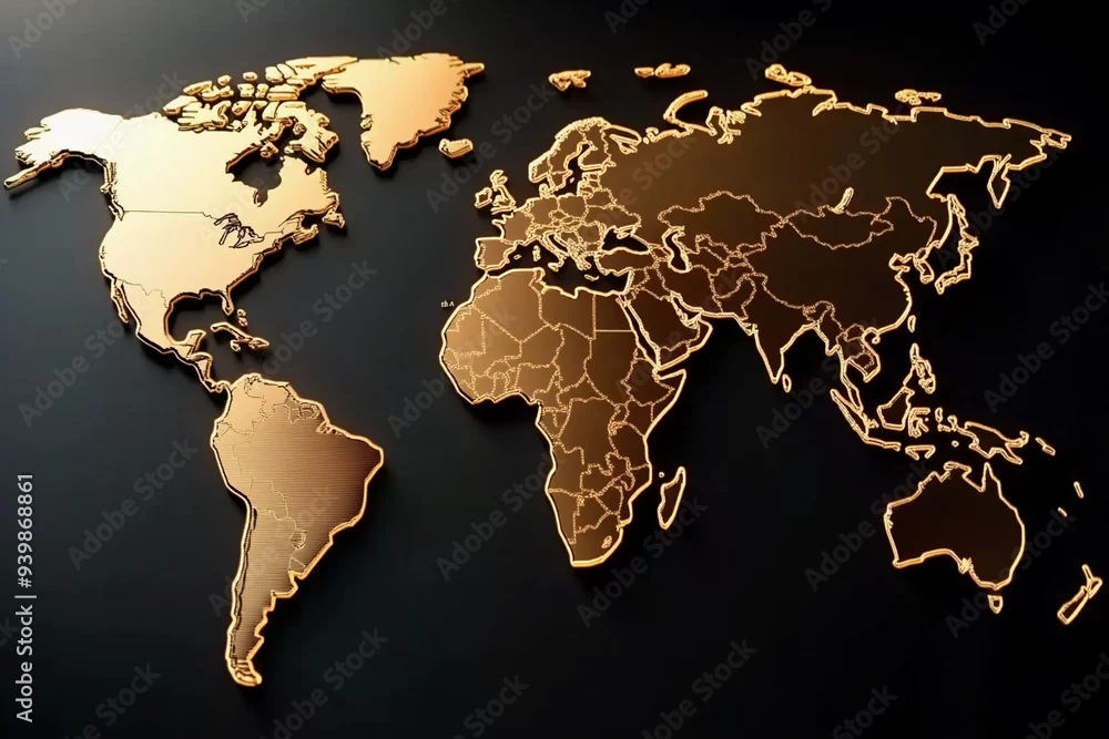 gold world map : golden world map on Black Background, world map, illustration