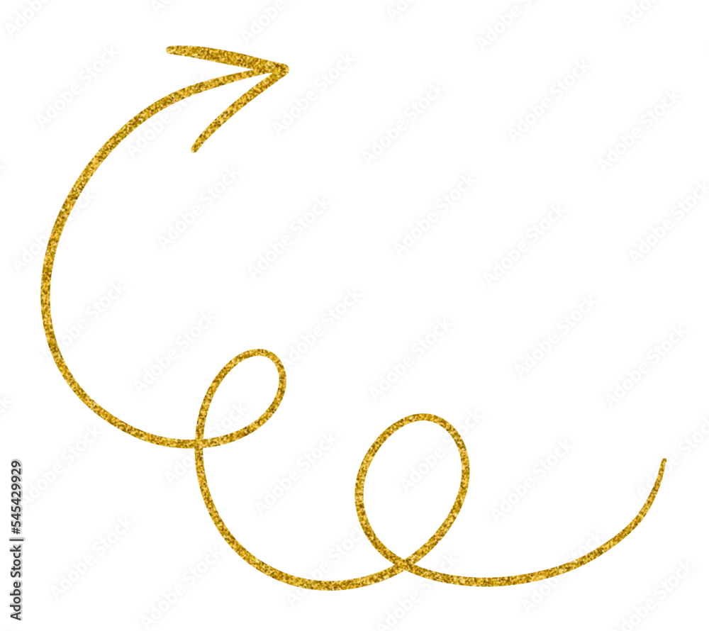 Golden glitter hand-drawn retro shapes. Arrow, wavy lines, Curve line, Curly Line