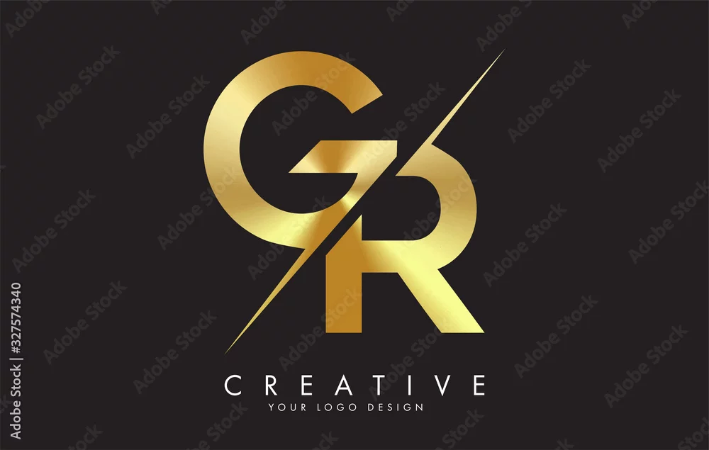 GR G R Golden Letter Logo Design with a Creative Cut.