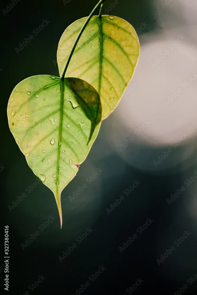 Green Bo leaf with Sunlight in the morning, Bo tree representing Buddhism in thailand.