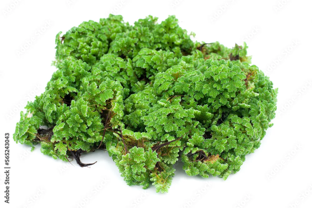 Green floating Azolla Pinnata (Azolla microphylla) isolated on white background. Used as an ingredient in animal feed.