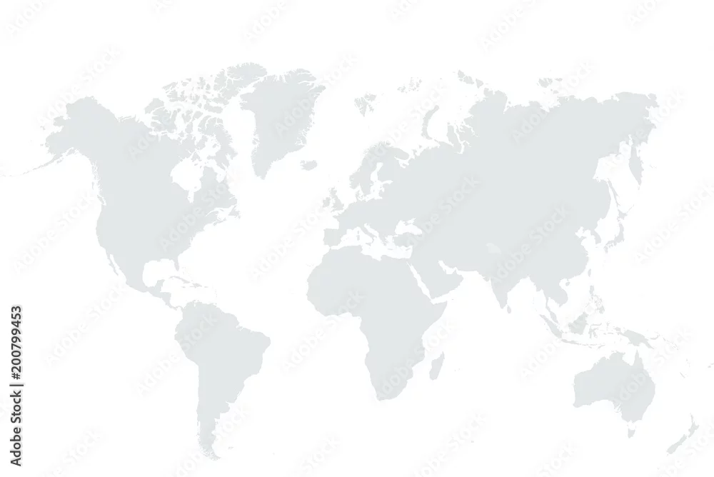 Grey World map vector isolated on white background. Flat Earth template. Globe icon.