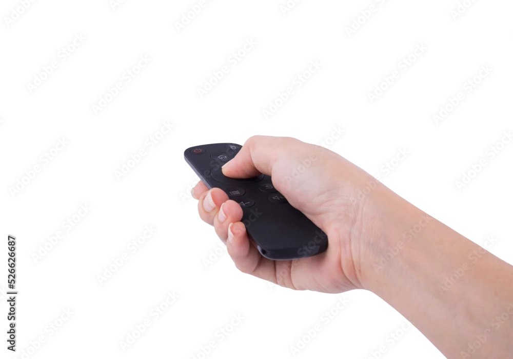 hand with multimedia tv remote contro