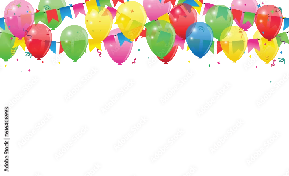 Happy birthday vector transparent background. colorful happy birthday border frame with confetti