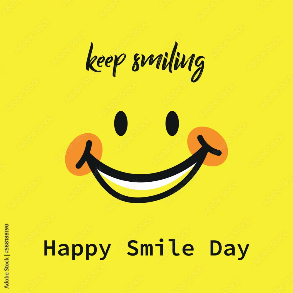Happy world smile day banner. World smile day lettering with smile face yellow background. Good mood. Fun concept. Smile icon illustration. Happy smile ...