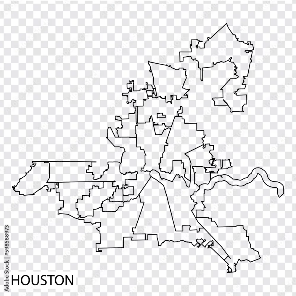 High Quality map of Houston is a city United States, with borders of the regions. Map Houston of Texas your web site design, app, UI. EPS10.