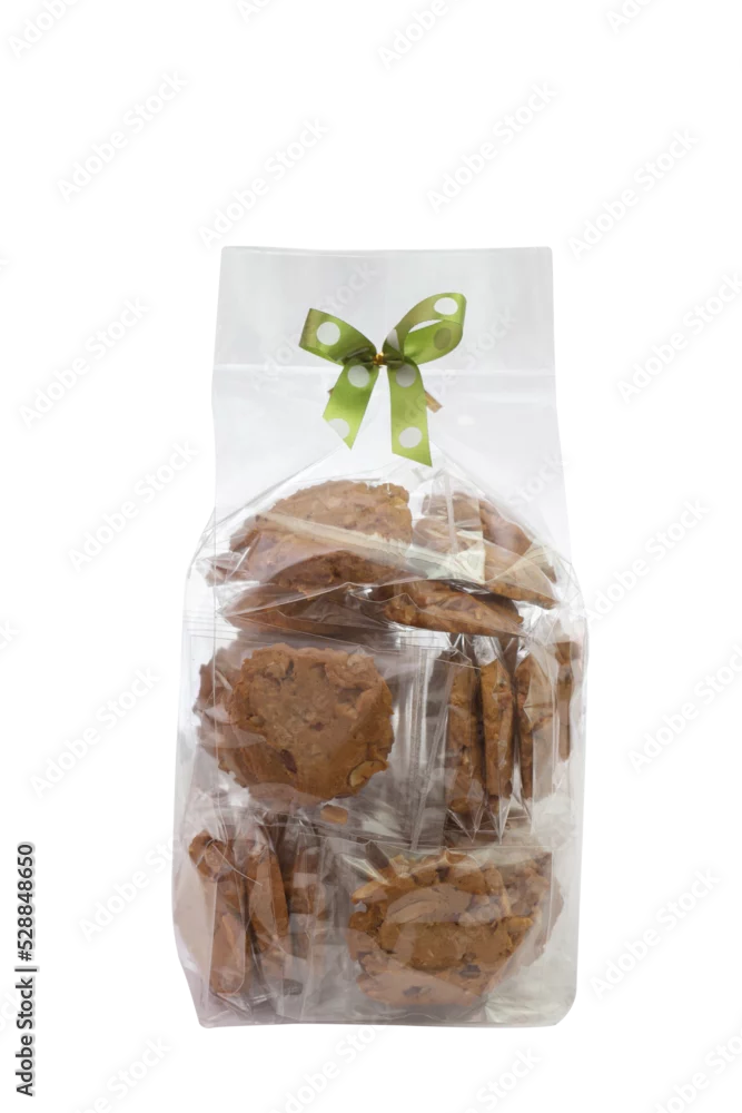 Homemade cookies in plastic bag packaging isolated on transparent background.food packaging concept.
