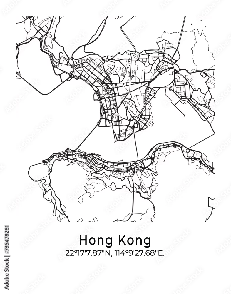 Hong Kong city map. Travel poster vector illustration with coordinates. Hong Kong Vector Map in light mode.