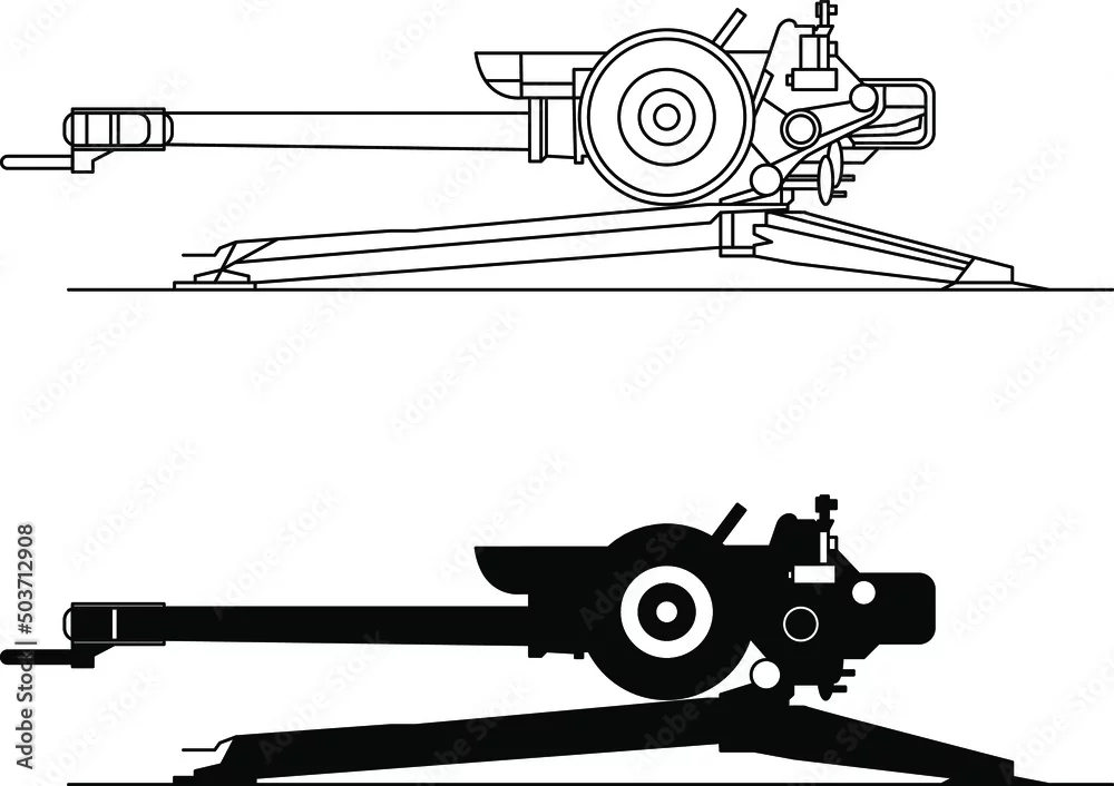 Howitzer icon, drawing, diagram and silhouette vector image.