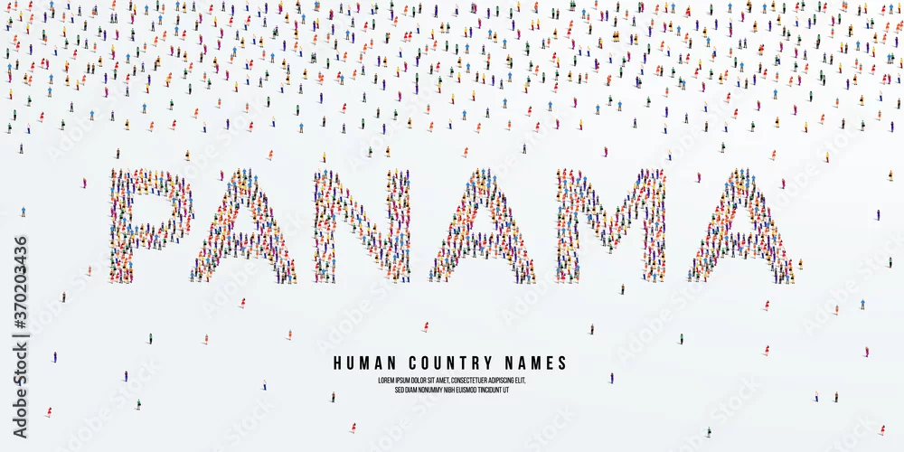 Human country name Panama. large group of people form to create country name Panama. vector illustration.
