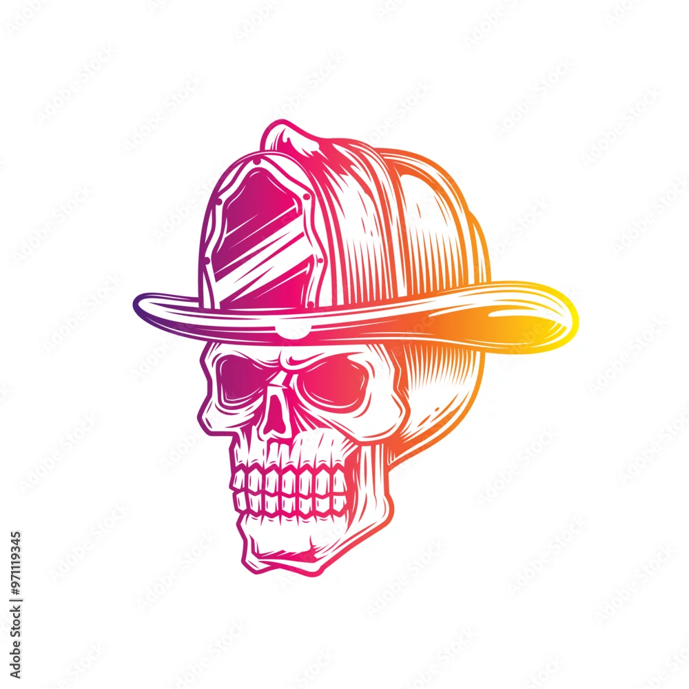 Human skull in a fire helmet. Firefighter. Original vector illustration in vintage style isolated on white background. T-shirt design.