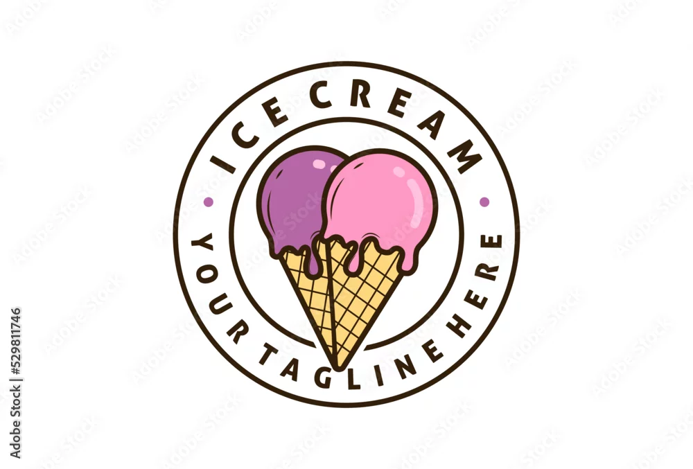 Ice cream logo design with scoops and waffle cone. Italian ice cream emblem illustration