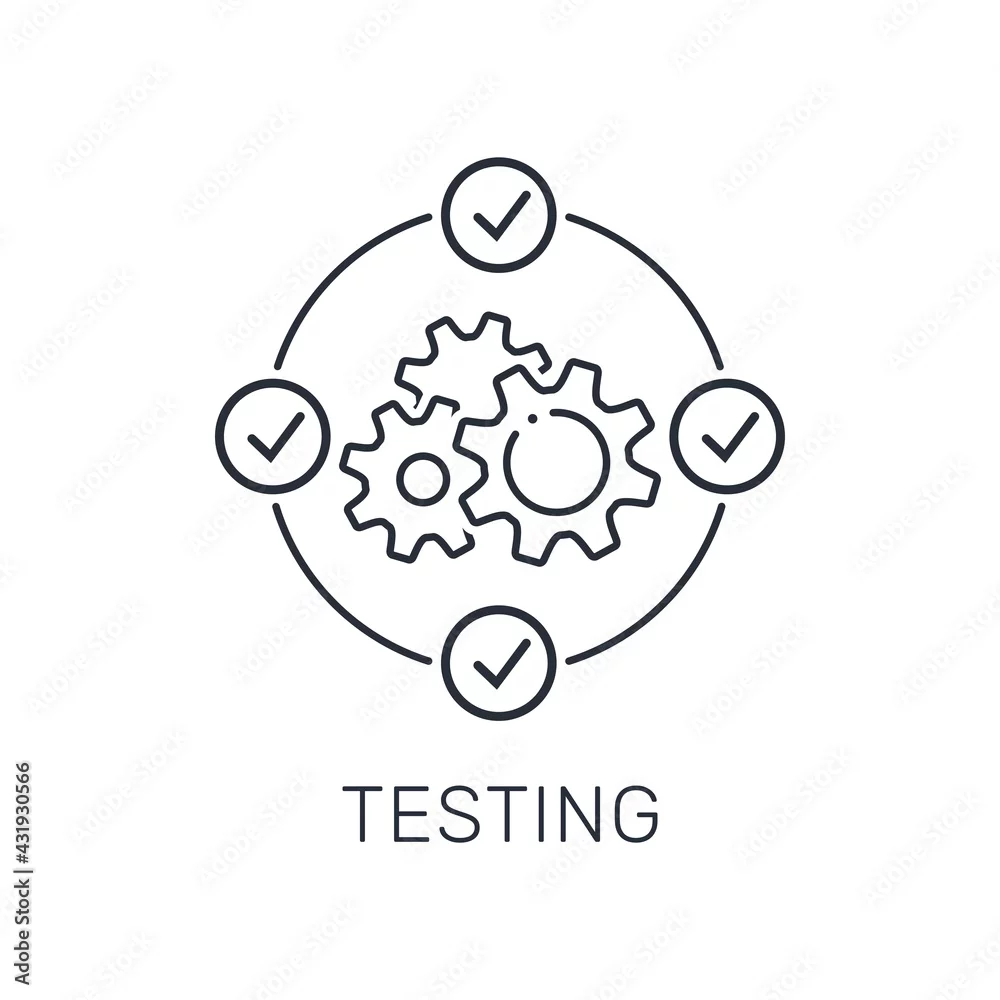 System testing. Validation and verification of the technological process. Vector linear icon isolated on white background.