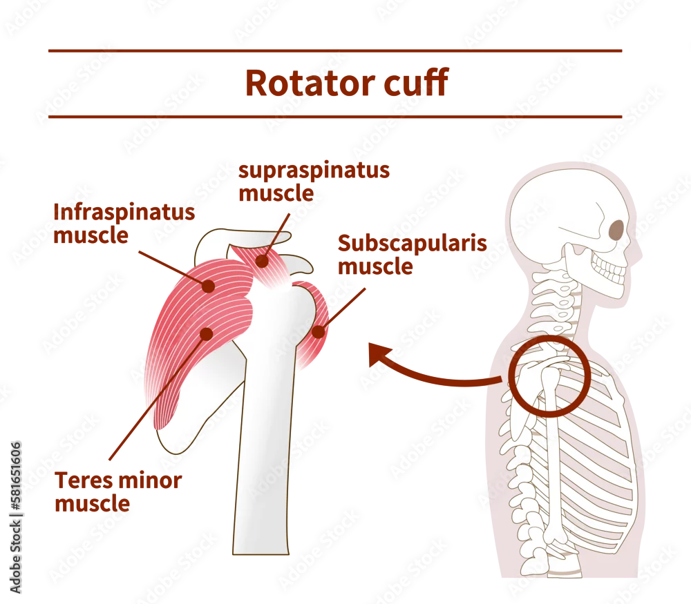 Illustration of the anatomy of the Rotator Cuff from tthe side