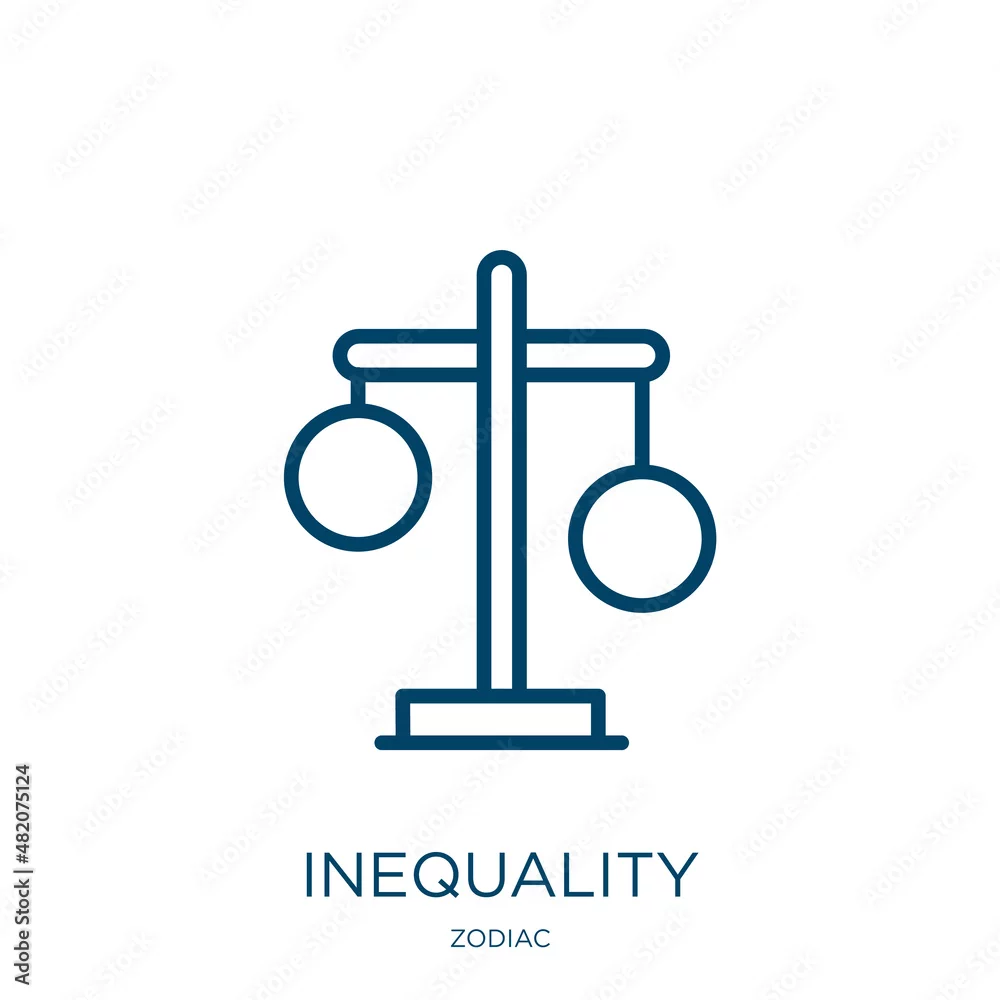inequality icon from zodiac collection. Thin linear inequality, social, discrimination outline icon isolated on white background. Line vector inequality sign, symbol for web and mobile