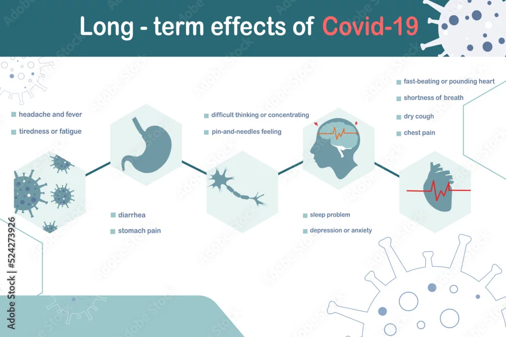 infographic of long-term effects of covid 19 or post covid 19 syndrome symptoms concept.vector illustration,flat design.