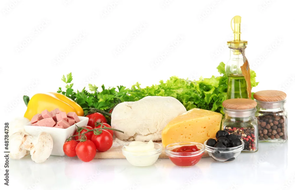 Ingredients for pizza isolated on white