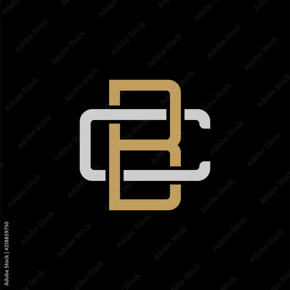 Initial letter C and B, CB, BC, overlapping interlock logo, monogram line art style, silver gold on black background