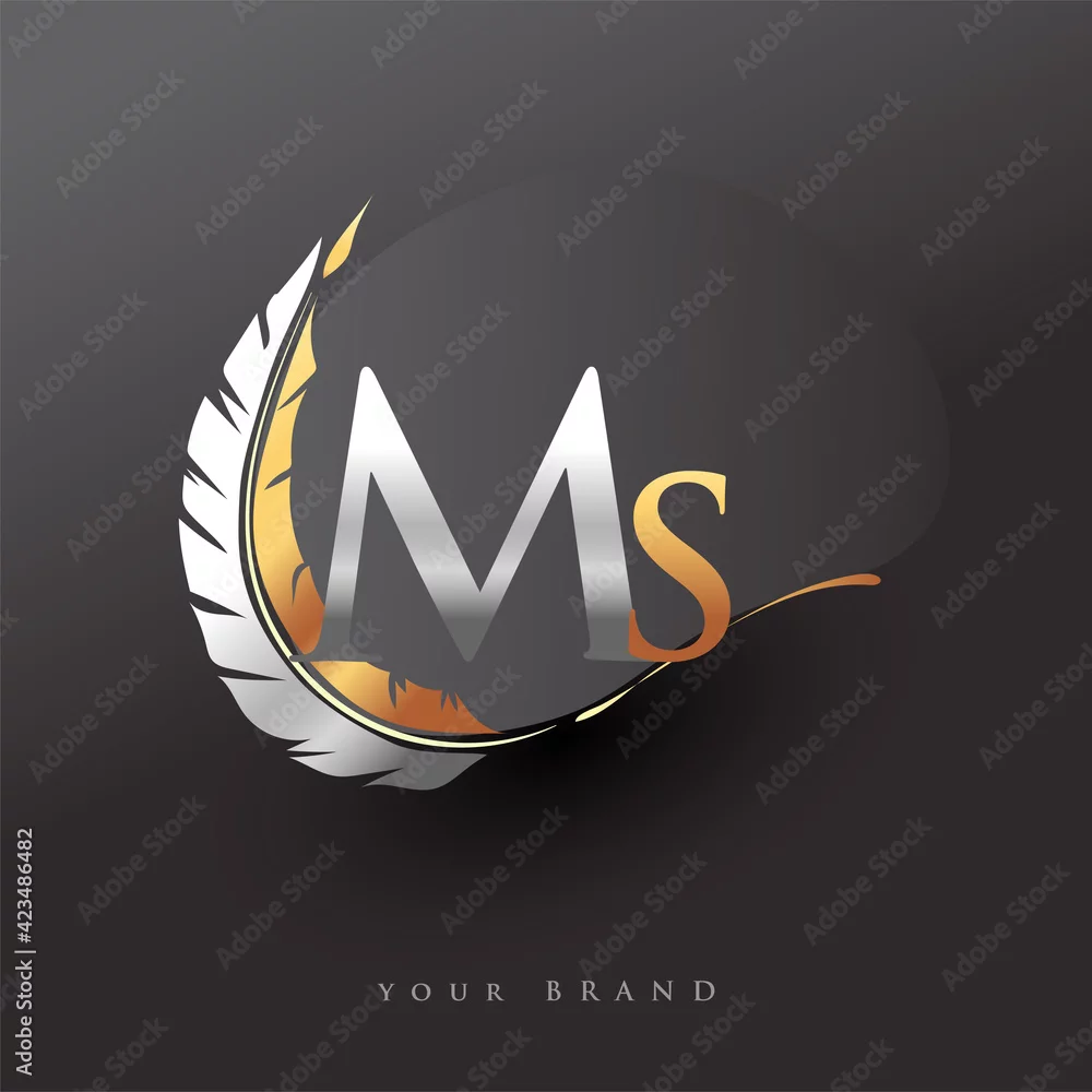 Initial letter MS logo with Feather Gold And Silver Color, Simple and Clean Design For Company Name. Vector Logo for Business and Company.