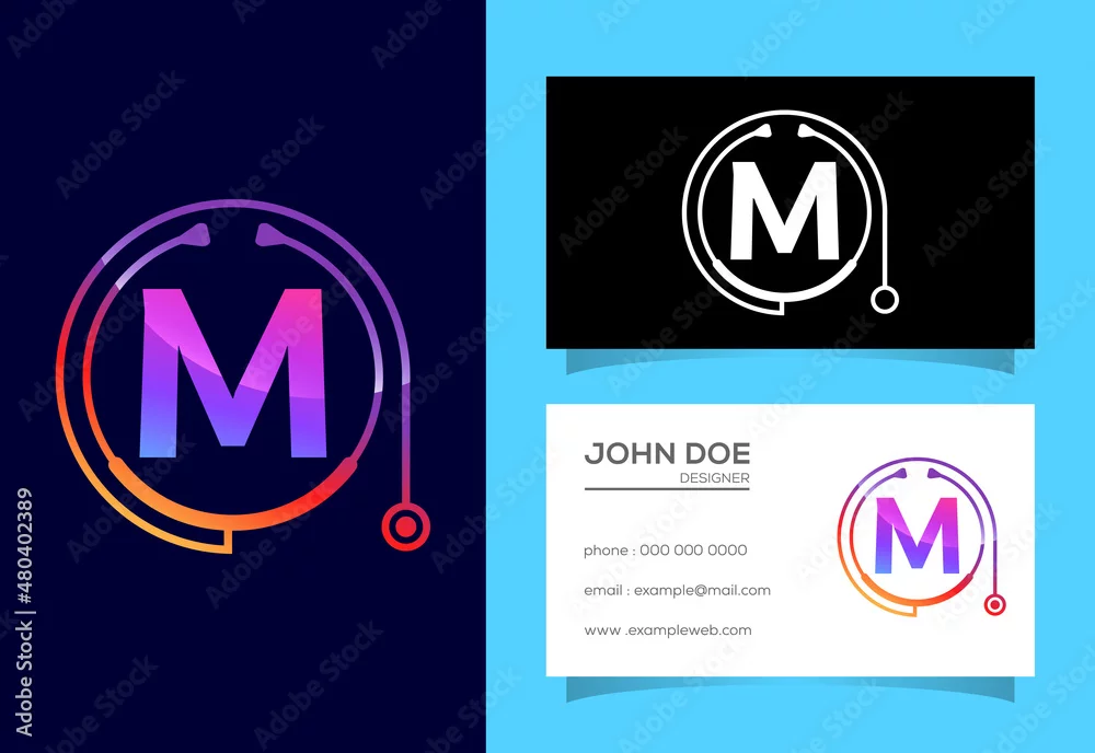 Initial M monogram alphabet with doctor stethoscope. Vector stethoscope logo or icon
