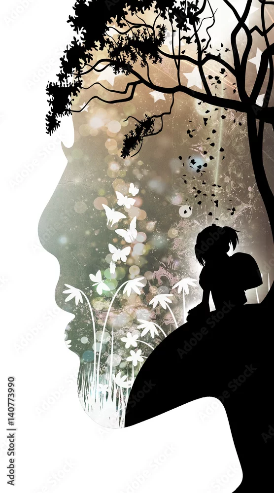Inner Child cartoon character in the real world silhouette art photo manipulation