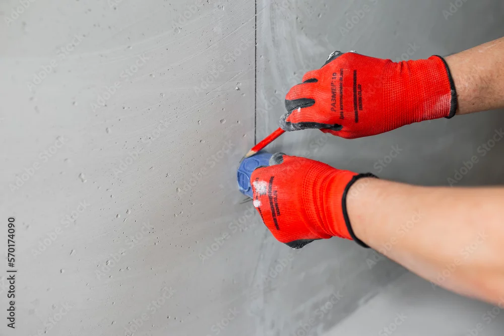 Installation and transfer of a place for an electrical outlet in a concrete wall with a cable recess in a hidden strobe