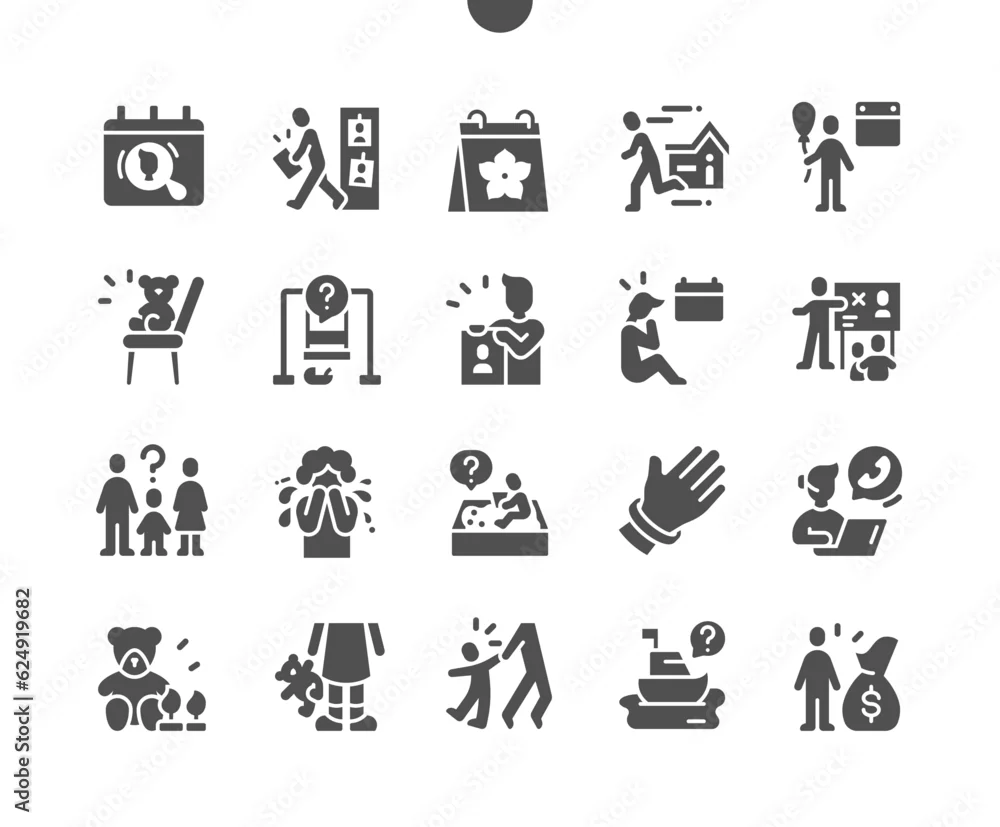 International Missing Children Day 25 May. Escape from home. Hot line. Selling children. Calendar. Vector Solid Icons. Simple Pictogram